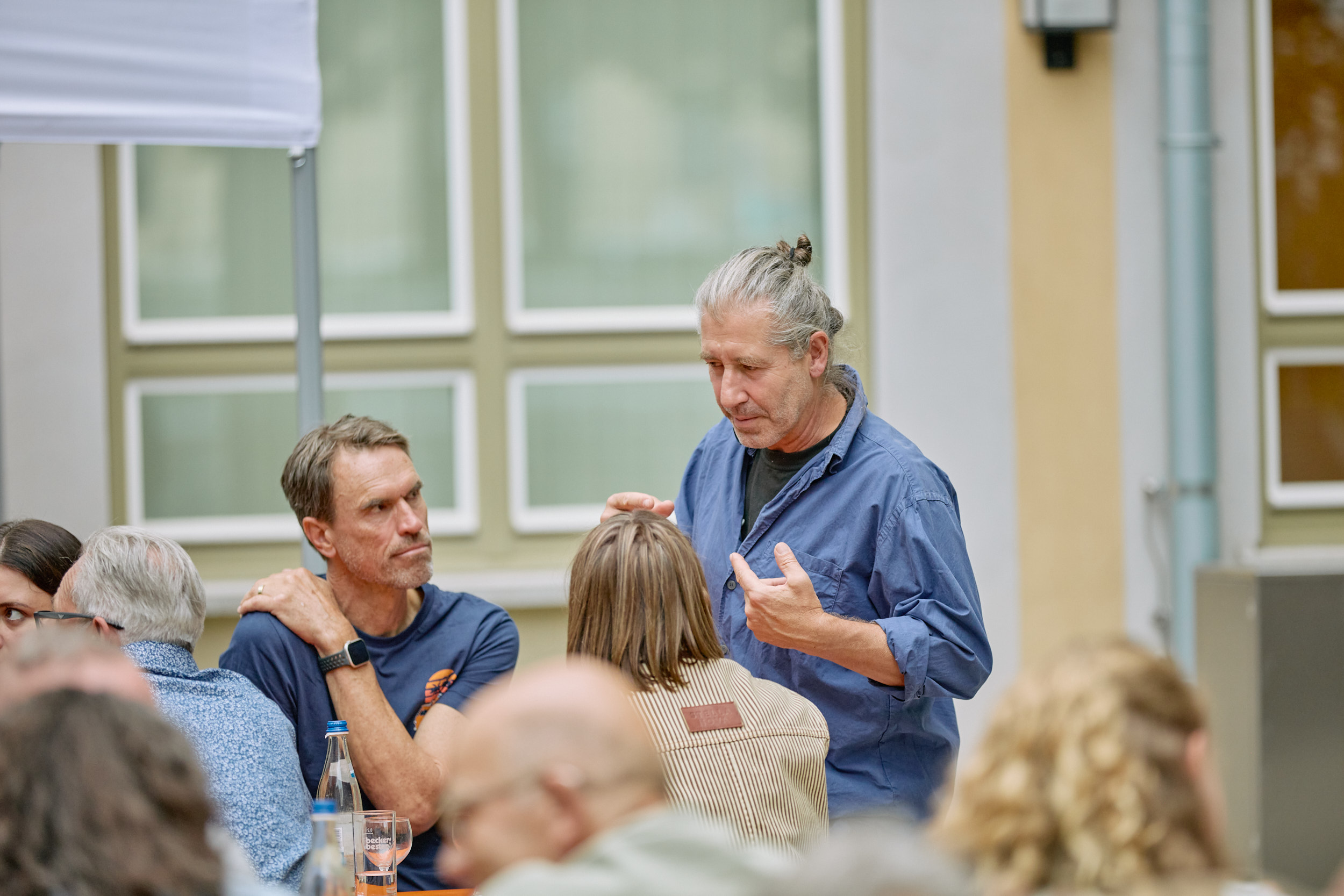 Die Besucherinnen und Besucher sprachen anschließend angeregt bei fränkischer Brotzeit über Baukultur und Architektur – in der Region, aber auch darüber hinaus – und stärkten so das Netzwerk in der nordbayerischen Provinz.