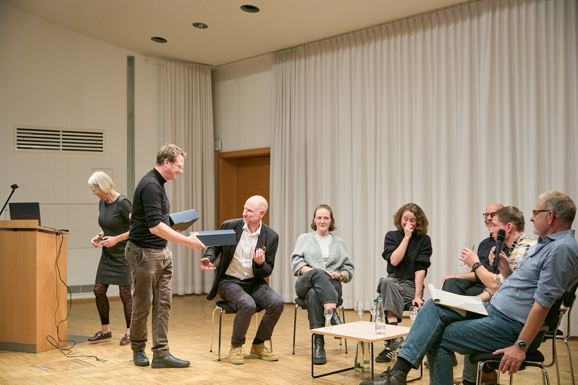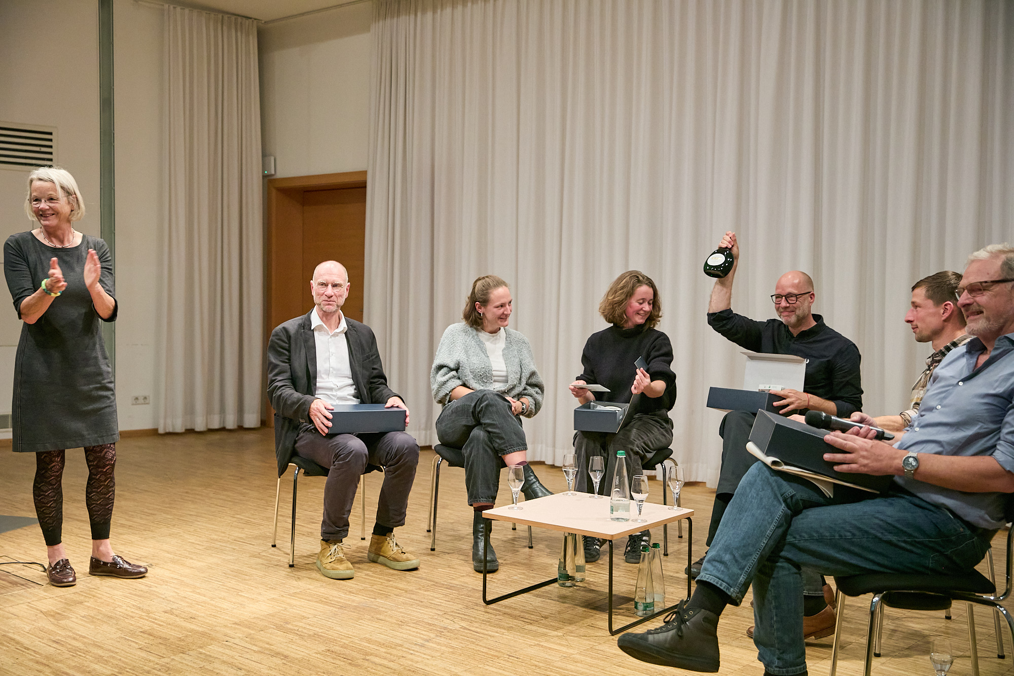 Der Treffpunkt Architektur Unterfranken dankte den Diskussionsteilnehmern und dem Moderator herzlich in „fränkischer Währung“ für ihre bemerkenswerten Beiträge, die einen weiteren (Fort)schritt zur Bauwende und hin zur Kreislaufwirtschaft darstellen werden.